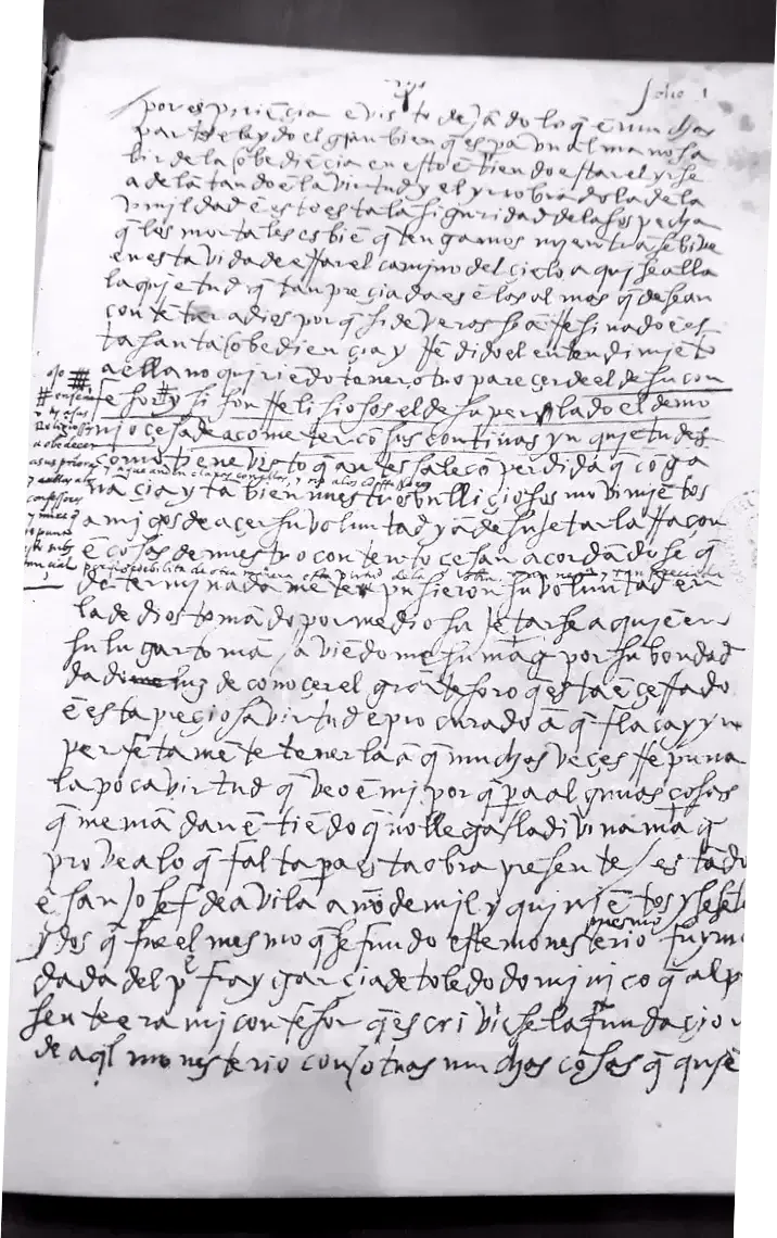 However, nothing could have prepared me for the thunderstruck moment when I discovered, in the inner archives, ancient copies of Santa Teresa de Ávila's books and facsimiles of her handwriting. Of all the hundreds and hundreds of books, my eyes and my hands were drawn to one unknown, beautiful, large brown leather-bound volume. I had no idea it was her book.