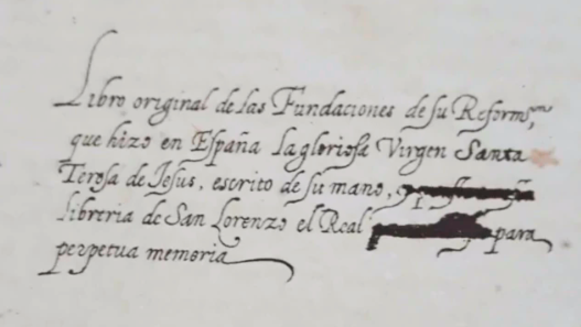 Translation : Original book of the Foundations of her Reform, which the glorious Virgin Saint Teresa of Jesus made in Spain, written in her own hand,